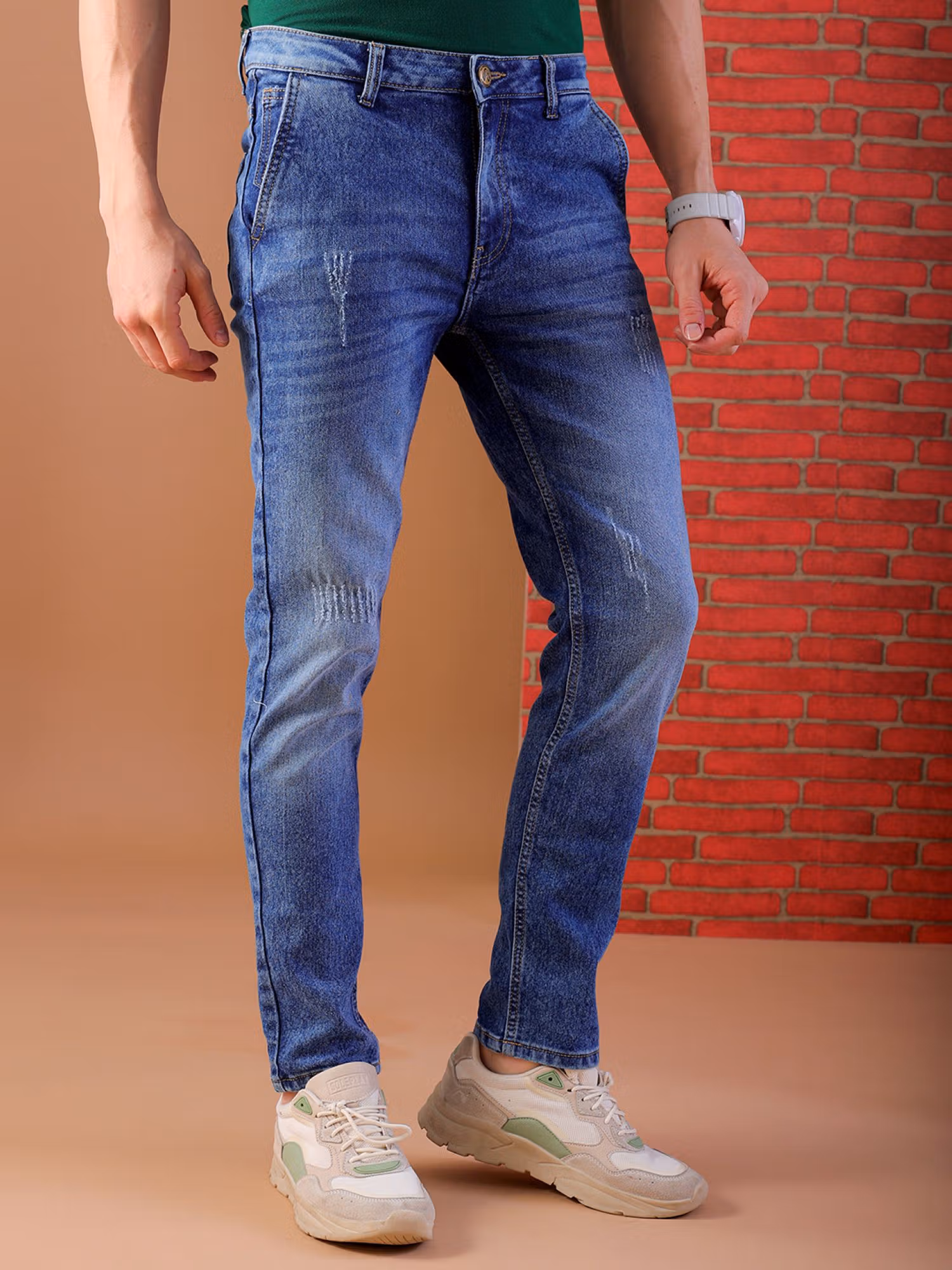Upgrade your denim collection with The Indian Garage Co Blue Men's Slim Fit Solid Mid-Rise Stretchable Jeans. They are crafted from high-quality material, featuring a mid waist style. Team up this pair with a T-shirt and shoes to complete the look.